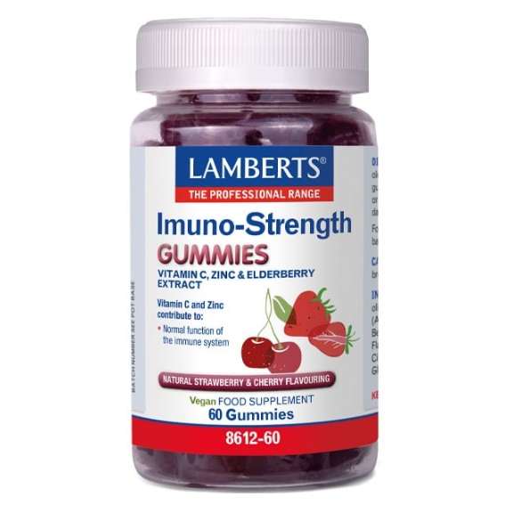 Lamberts® Imuno-Strength® is a tasty elderberry gummy rich in flavonoids, including potent antioxidant anthocyanidins, and includes vitamin C and zinc to support normal immune function year-round.
