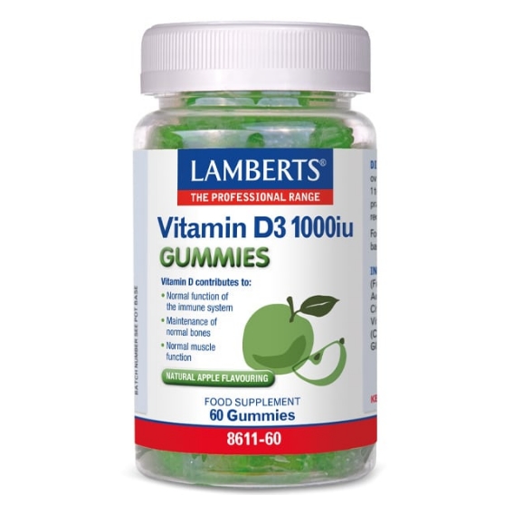 Each Lamberts® Vitamin D3 1000 iu gummy provides 25 µg of highly bioavailable vitamin D3 for maximum absorption. Delicious apple-flavoured and free from added sugar, these gummies are ideal for those who struggle with tablets. Vitamin D3 supports bone, immune, and overall health, especially in winter or as the body’s ability to produce it declines with age.