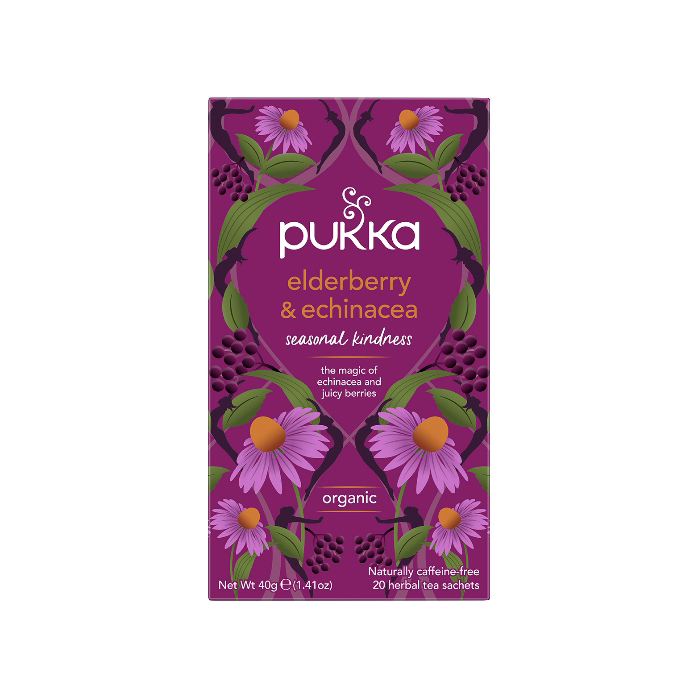 Restore your senses with our expertly blended Elderberry and Echinacea tea. Our reviving herbal tea blends fruity berries, echinacea and warming ginger to restore and recharge. Bounce back to your best self with every cup.